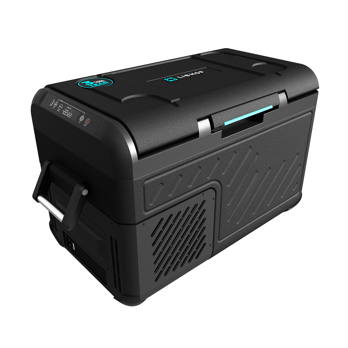 LIBHOF W-26 – экспедиционный вариант классических автомобильных решений. Модель отличает корпус, сделанный из ударопрочного пластика. Углы холодильника имеют скругленную форму и оснащены дополнительной защитой от ударов, сколов и механических повреждений. По бокам устройства имеются две усиленные складные ручки для легкой транспортировки. Особенное строение крышки позволяет открывать ее слева направо, справа налево, а также при необходимости полностью снимать ее с холодильника. Толстый изотермический слой стенок позволяет длительное время поддерживать низкую температуру внутри корпуса. Холодильник работает через кабель питания от гнезда прикуривателя с напряжением 12/24 вольта.