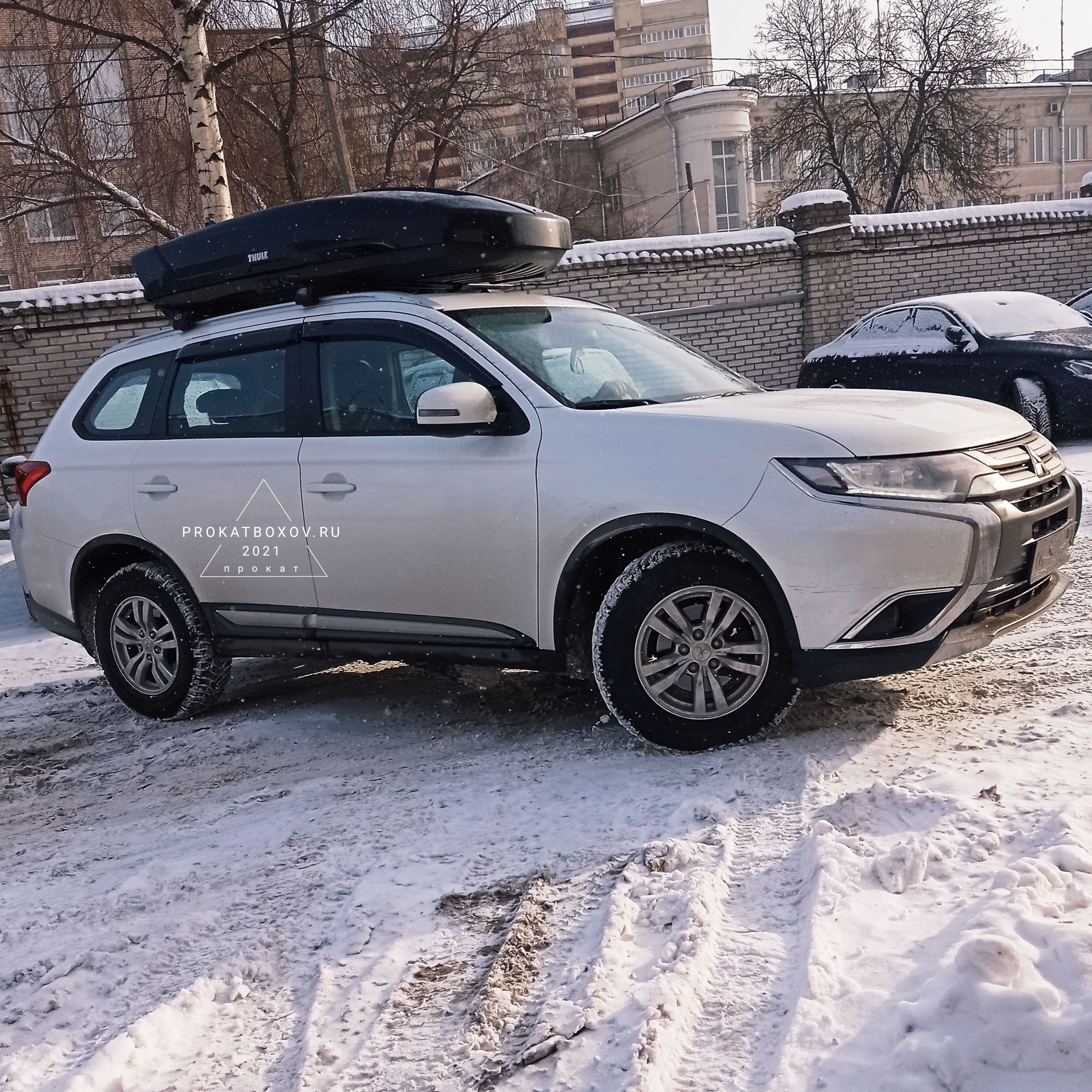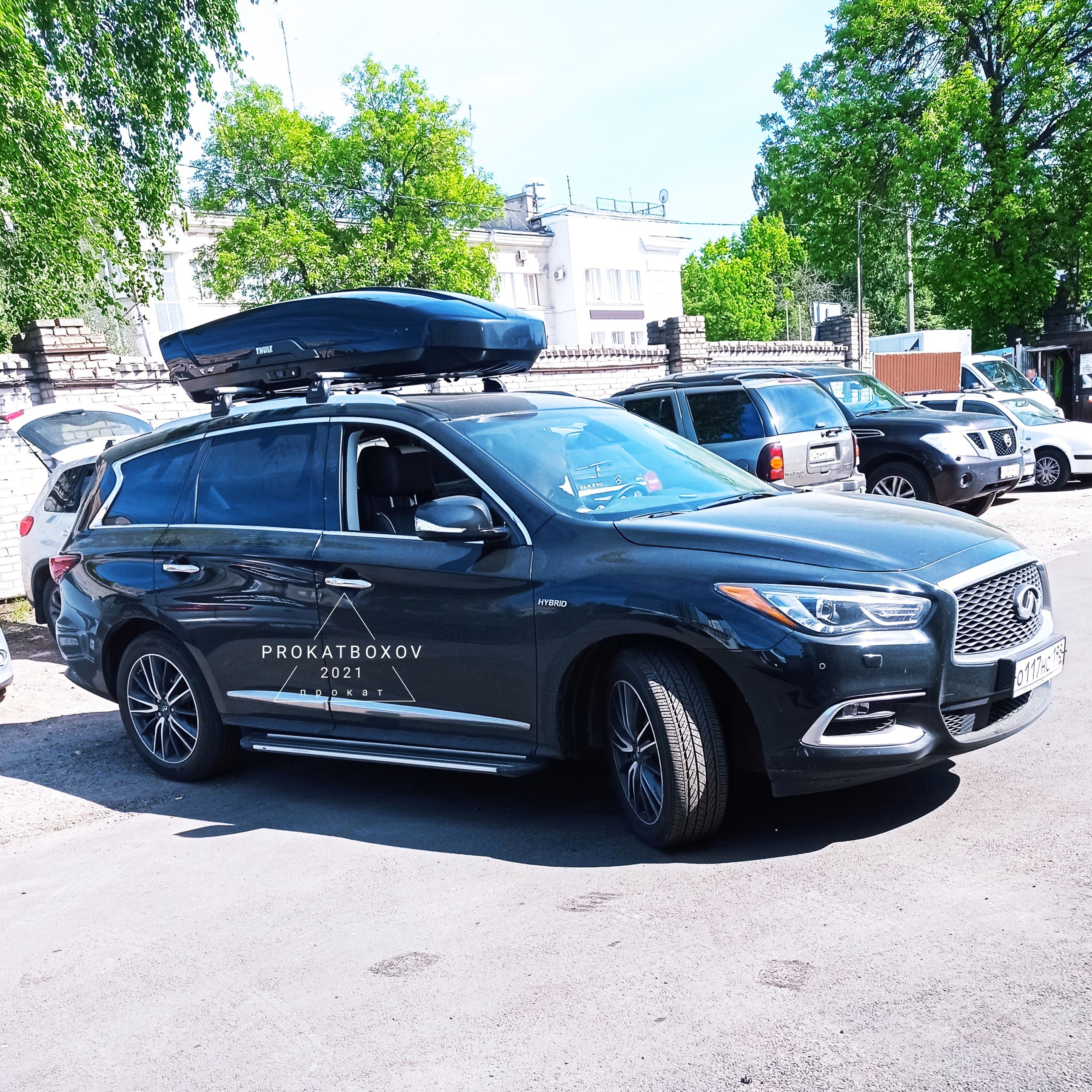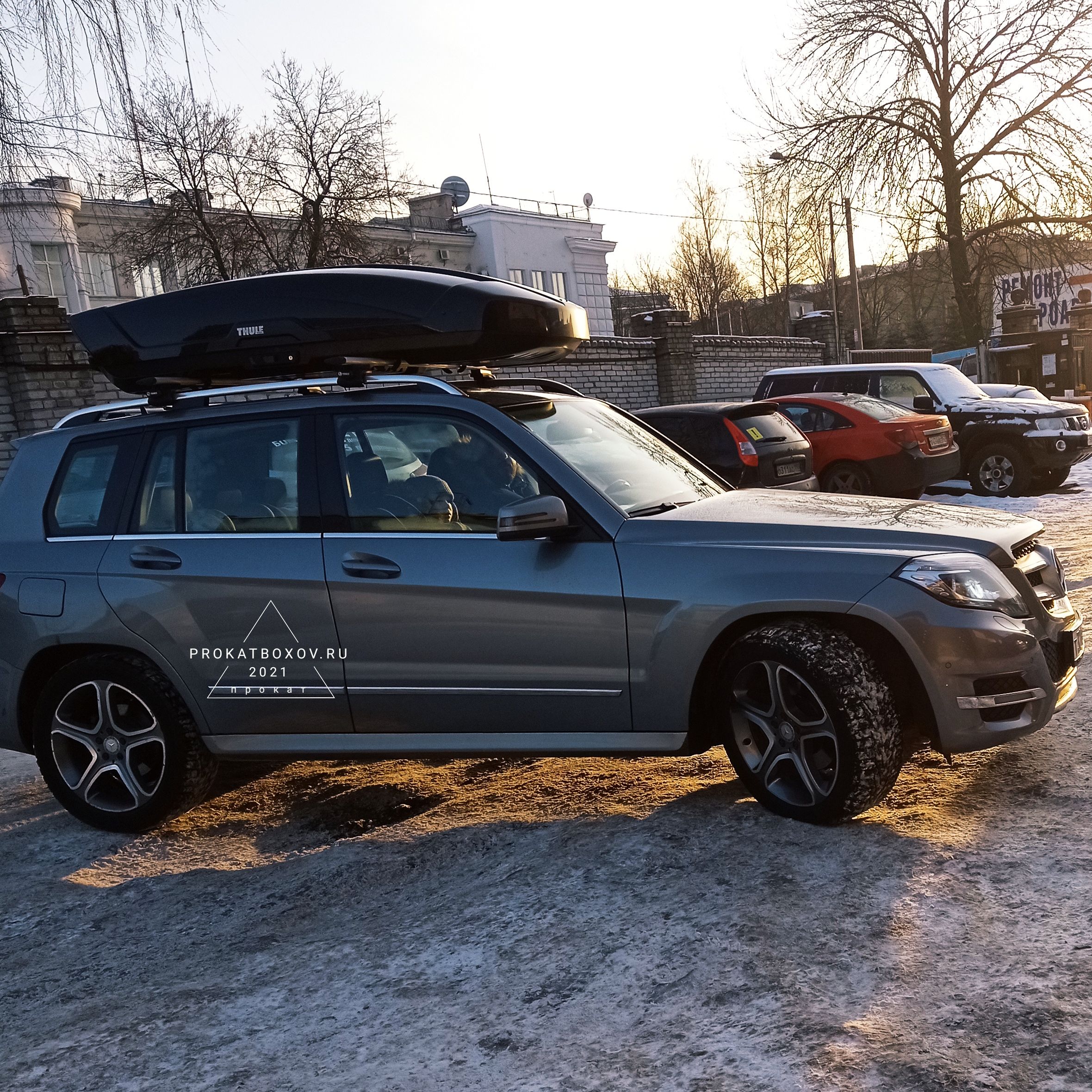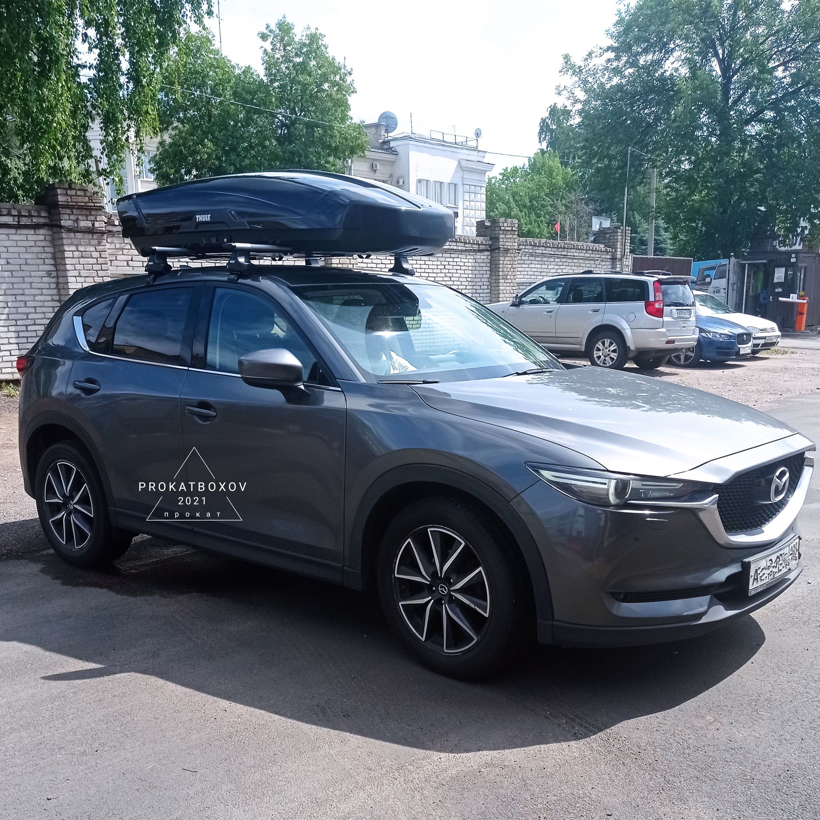 - Благодаря фронтальному размещению на крыше автомобиля бокс не мешает открывать багажник